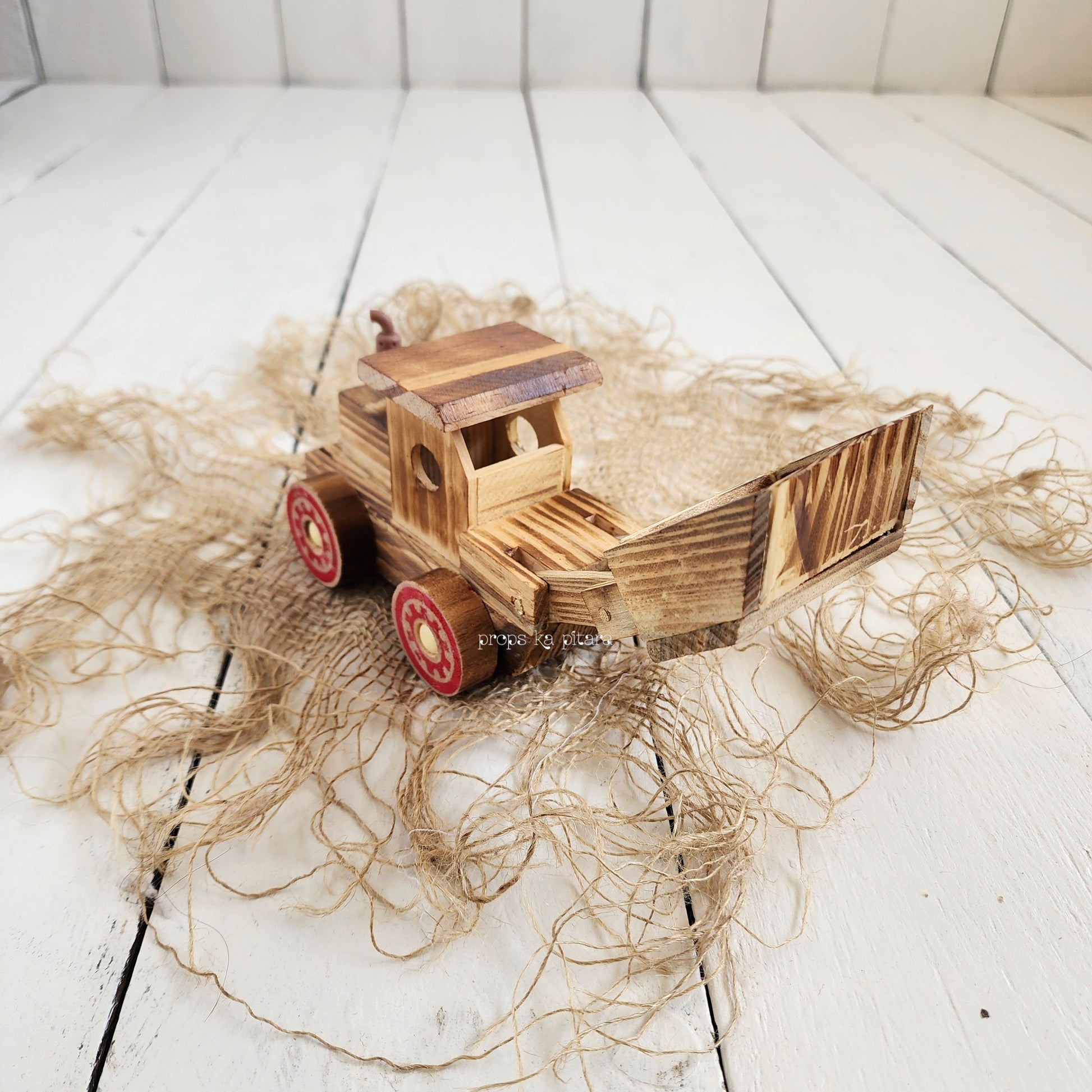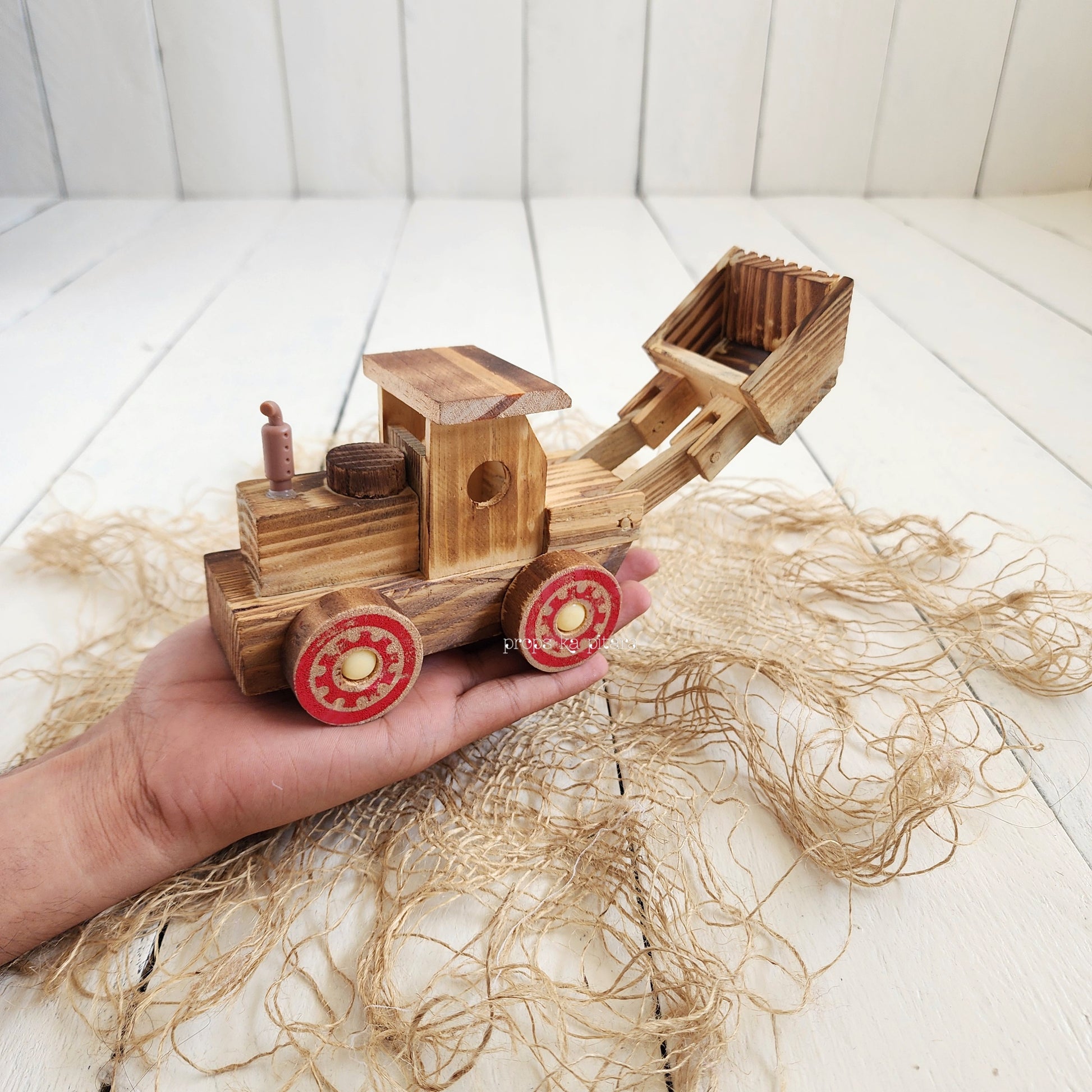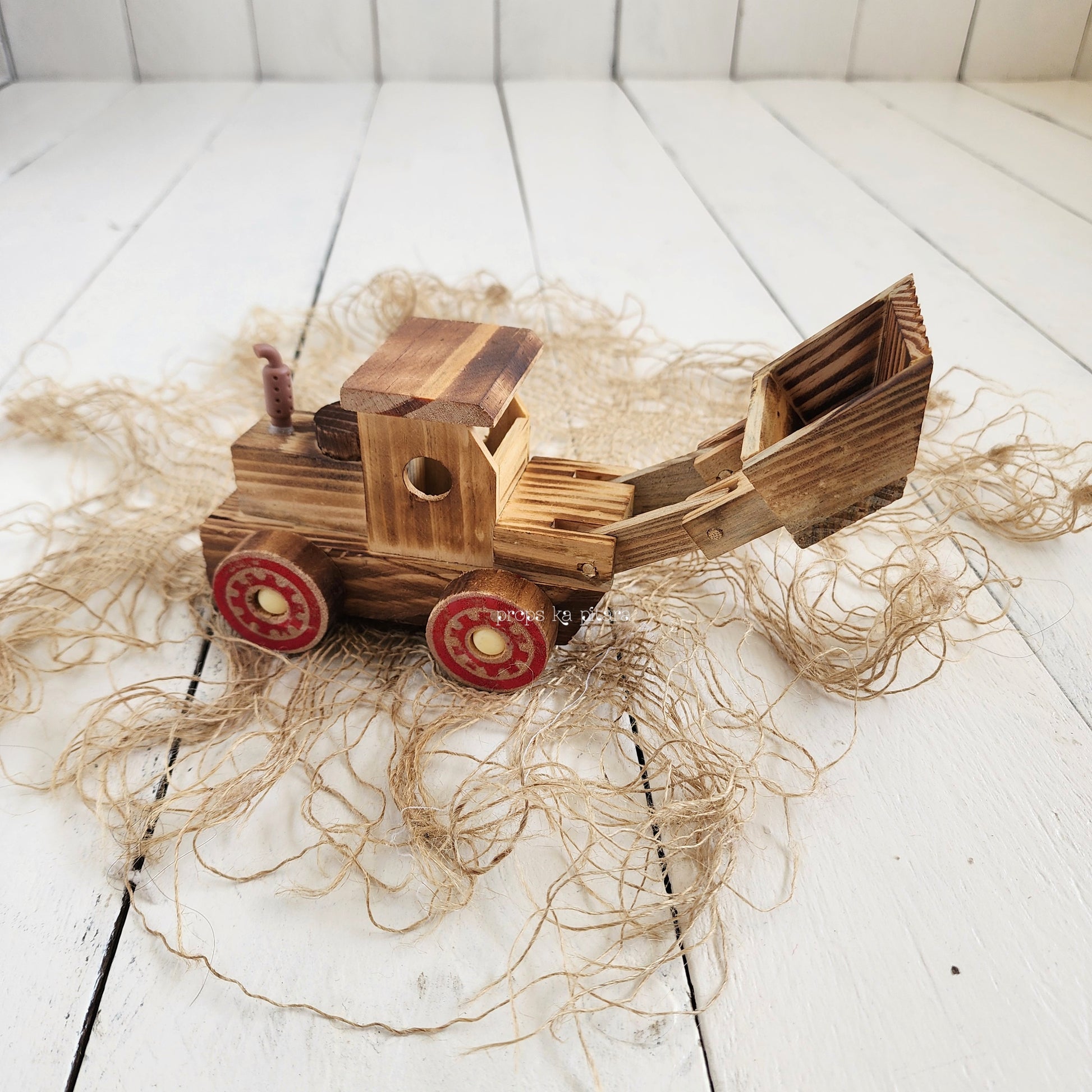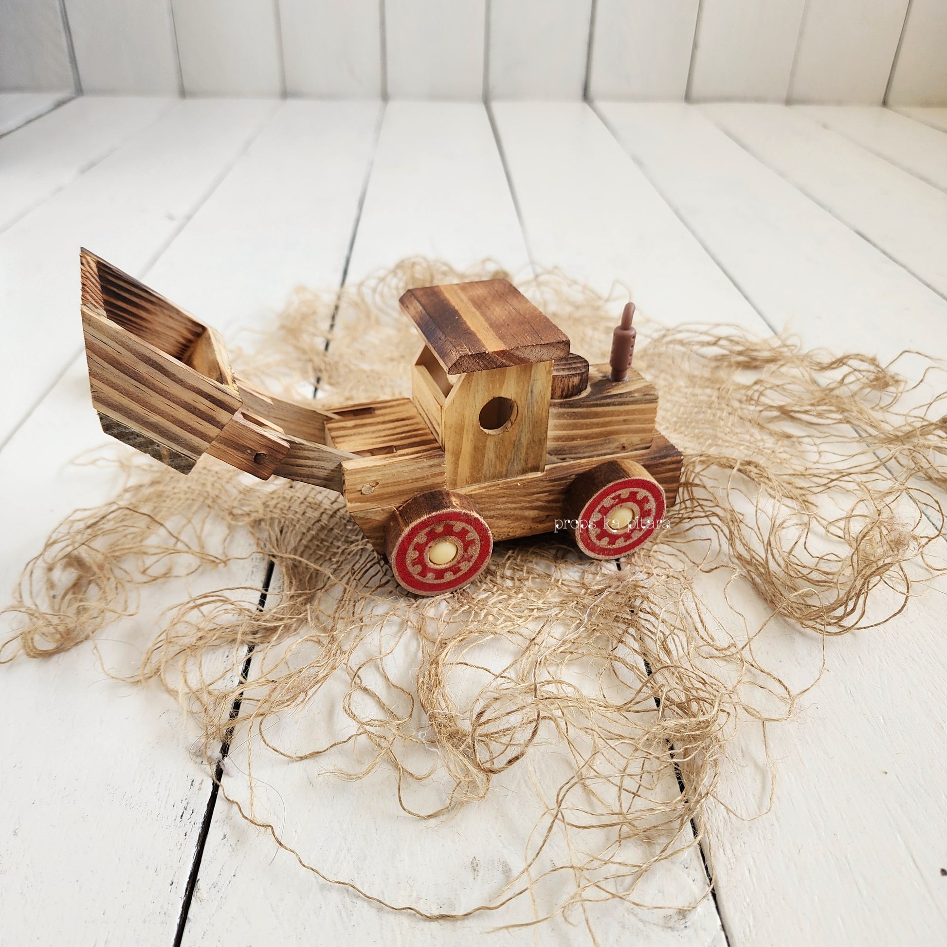 A beautifully handcrafted wooden Bulldozer that is ideal for a variety of setups.