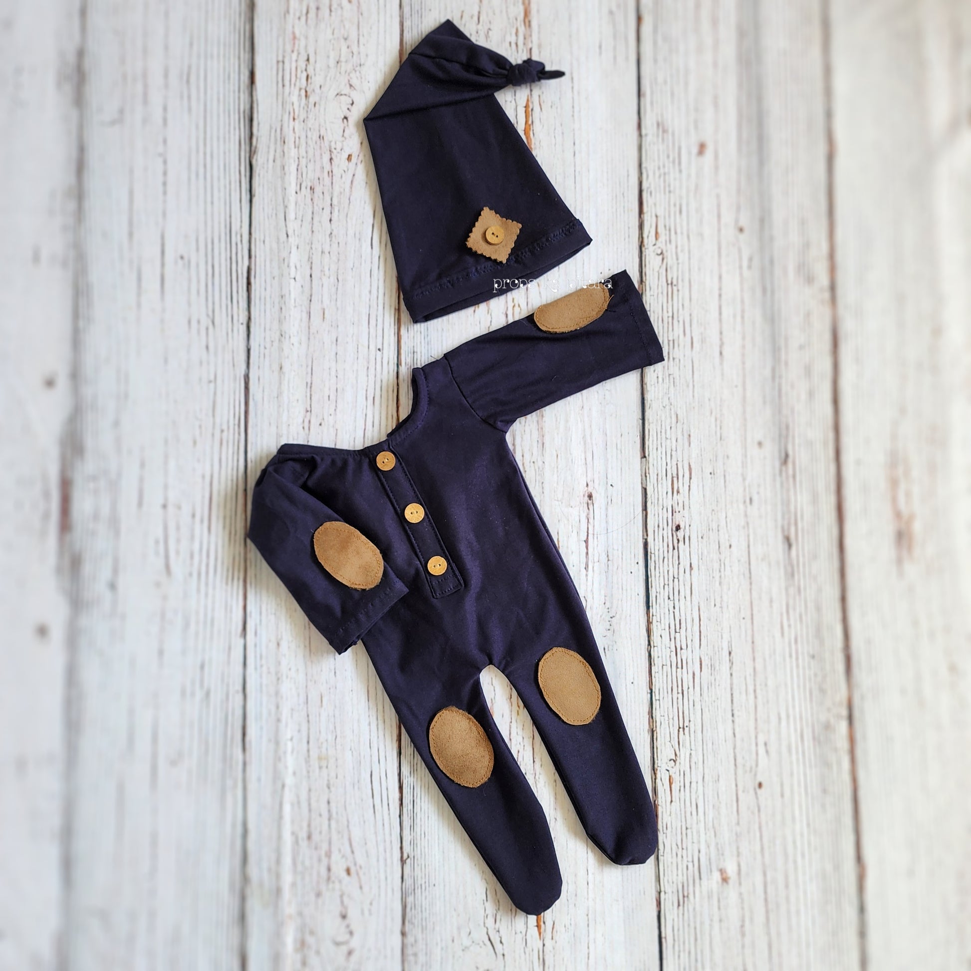 Adorable footed sleepsuit with matching sleepy hat, these are perfect to capture some cozy snuggled up babies.