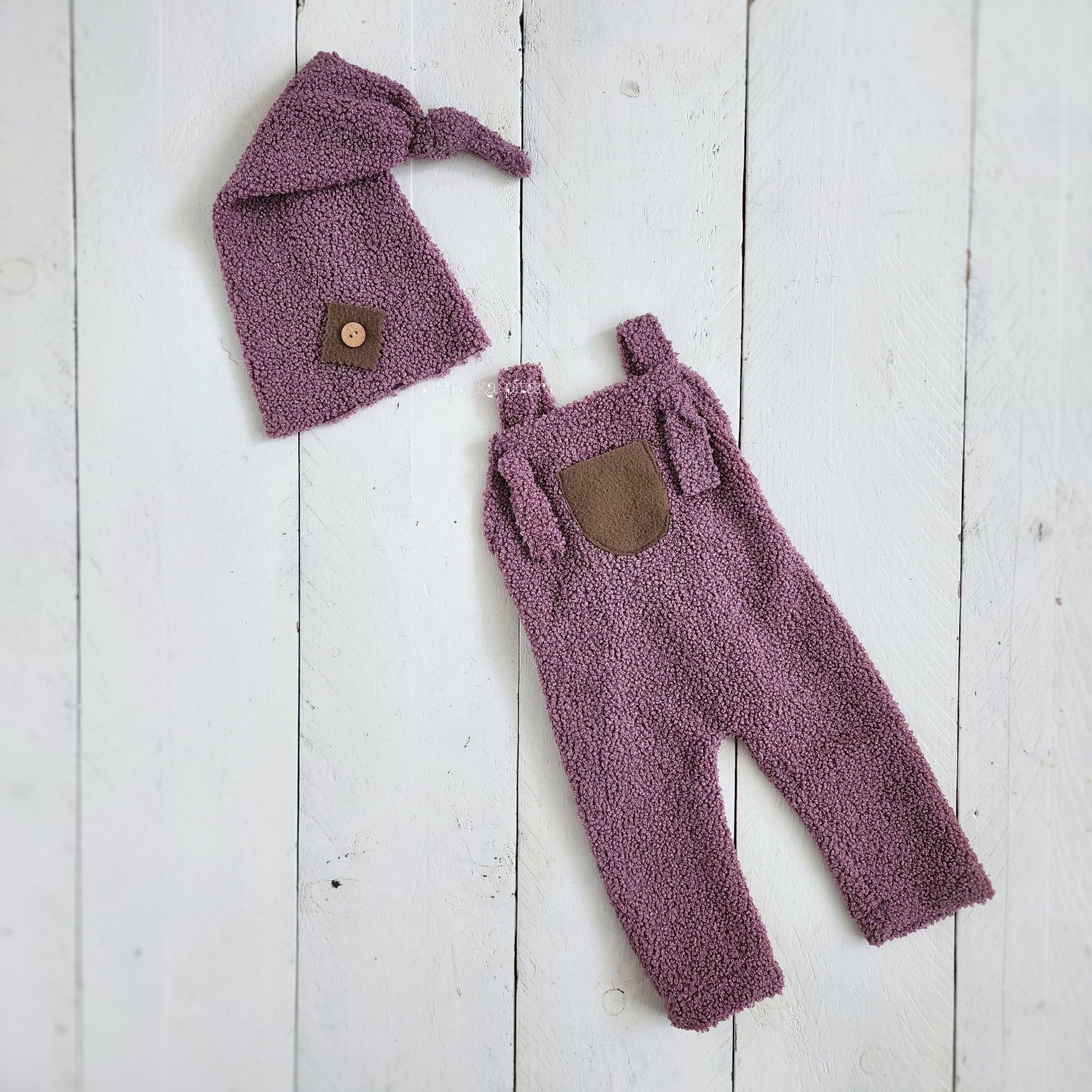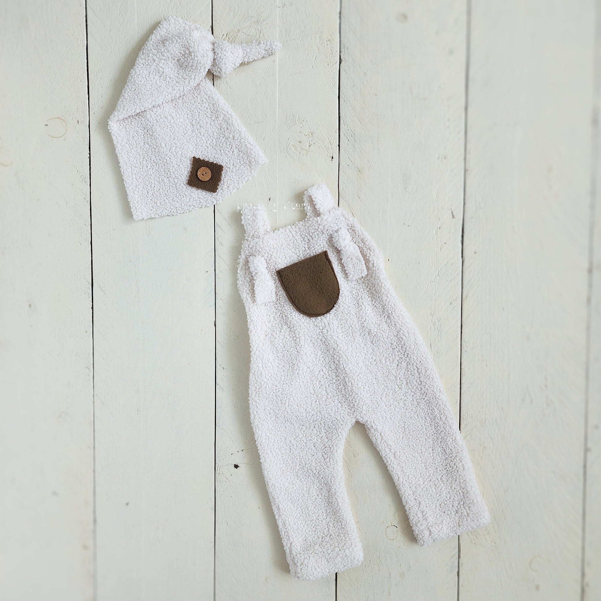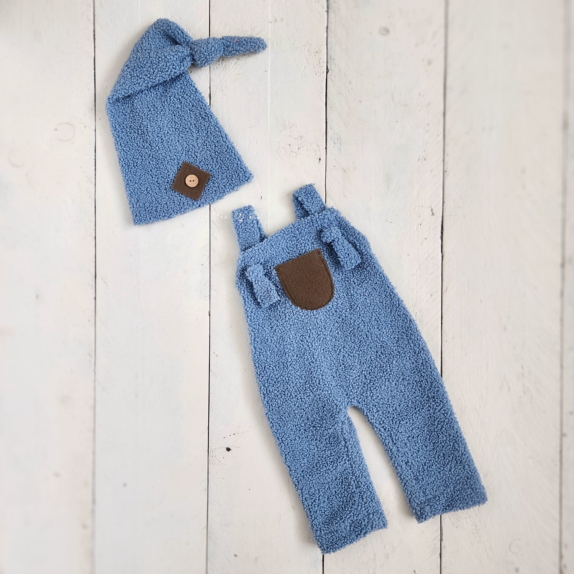 Adorable overalls with matching sleeper hat made from super soft fabric.