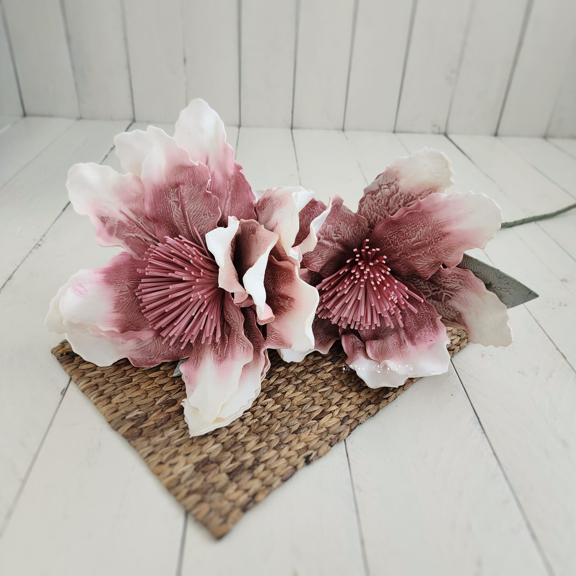 Due to shipping limitations, the flowers may need gentle spreading out with fingers to achieve the desired look. Made from delicate material, can tear with rough pulling and tugging.