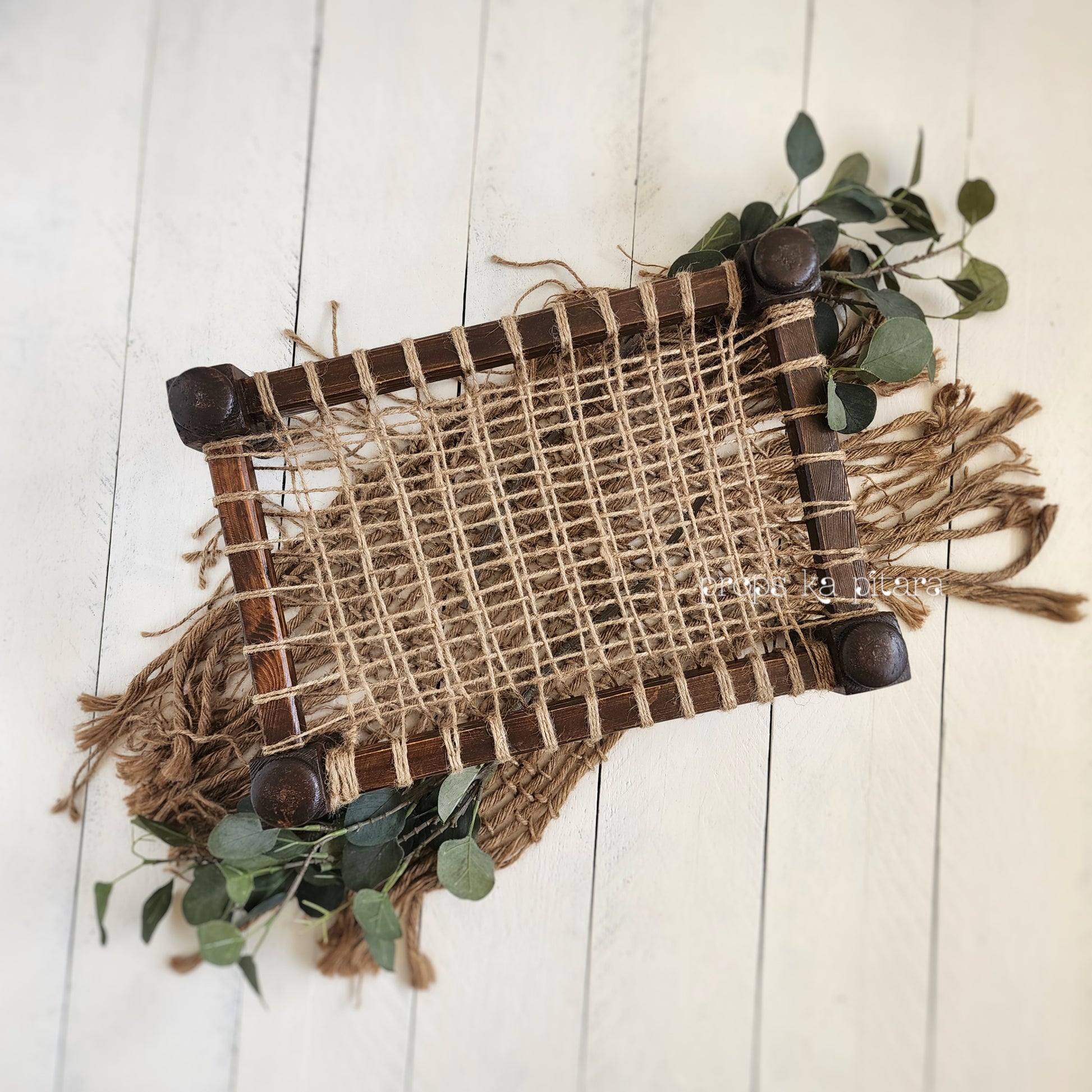 This charming Indian charpai is an original design featuring a combination of traditional Indian furniture with unique weaving.