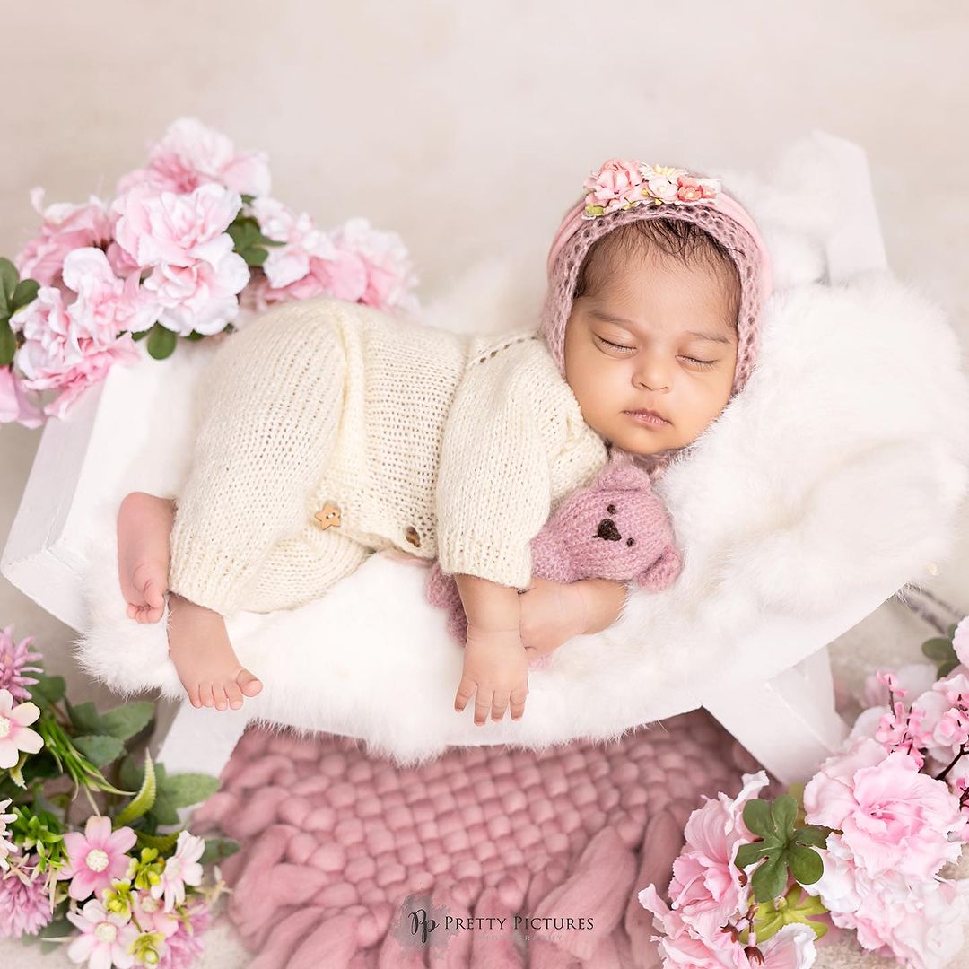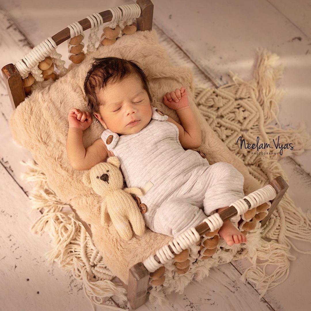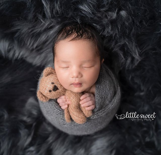 Lovely knit teddy toys are ideal as photo props in newborn photography.