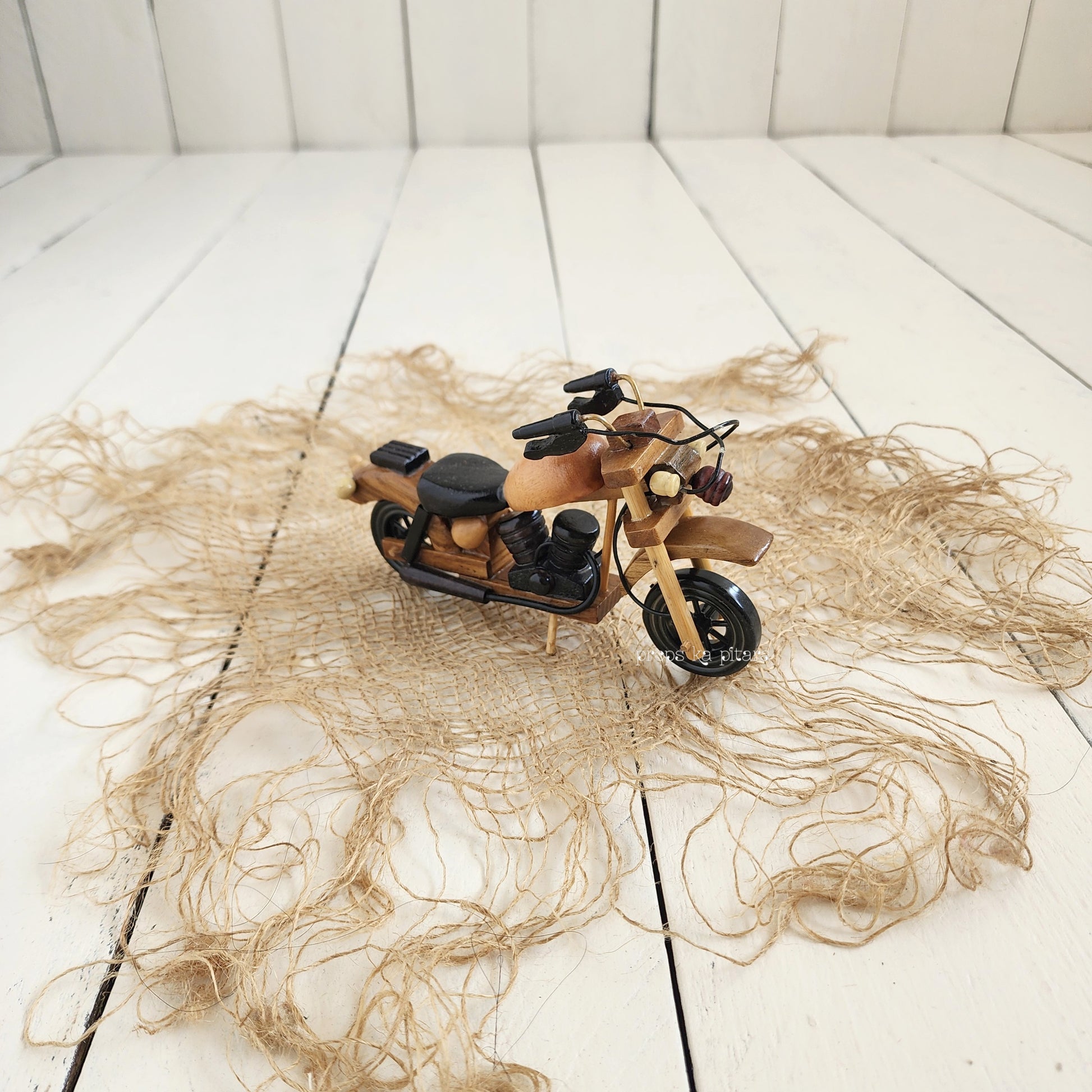 A beautifully handcrafted wooden Motorbike that is ideal for a variety of setups.