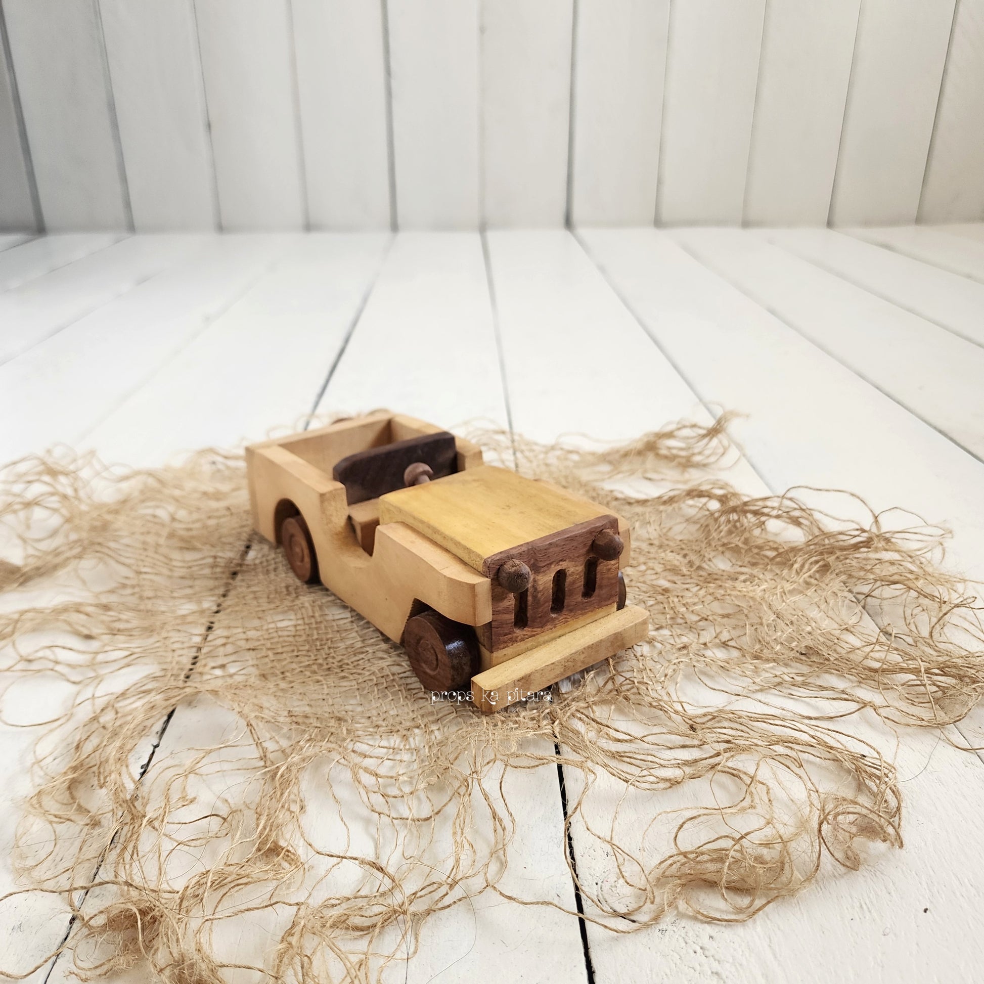 A beautifully handcrafted wooden Open Jeep that is ideal for a variety of setups.