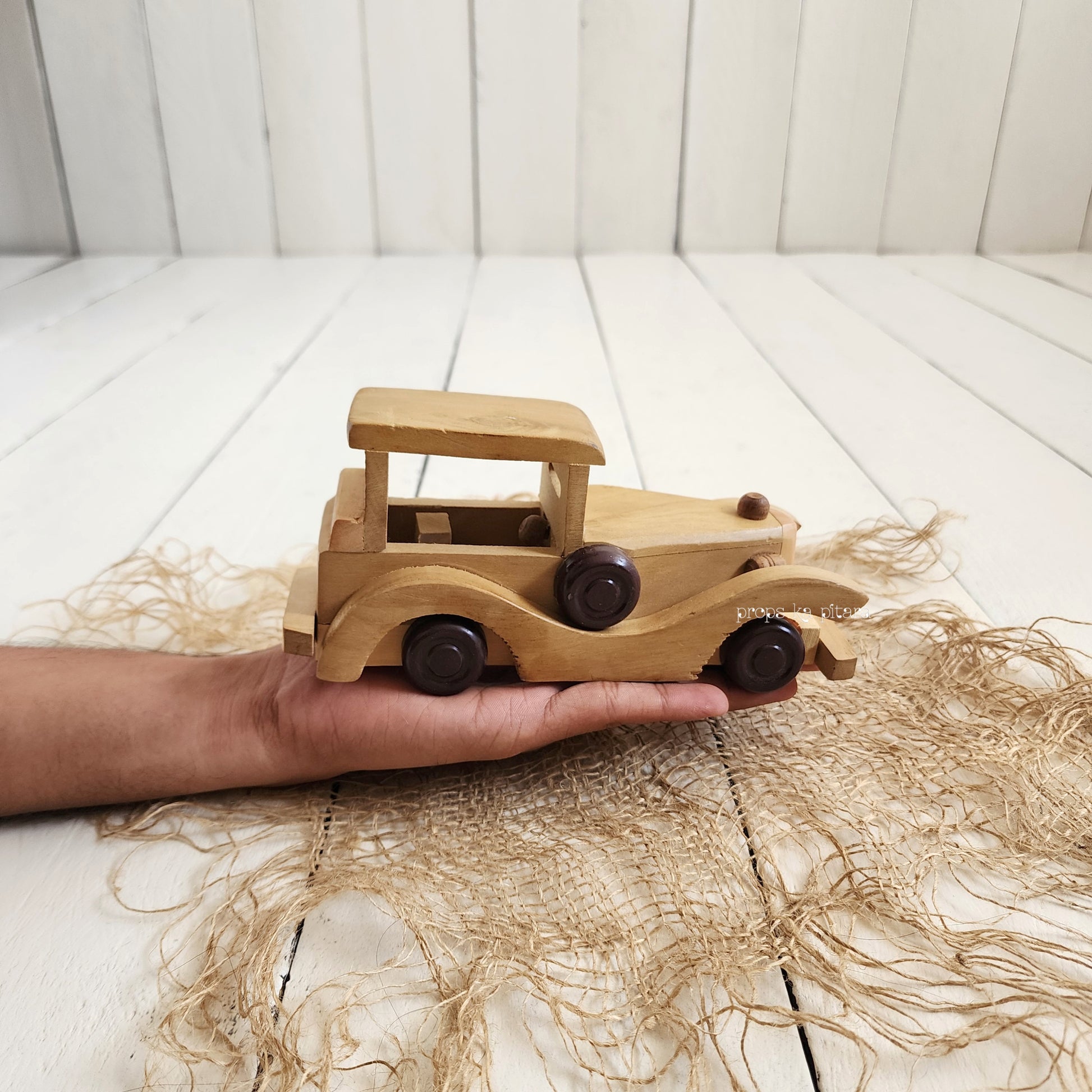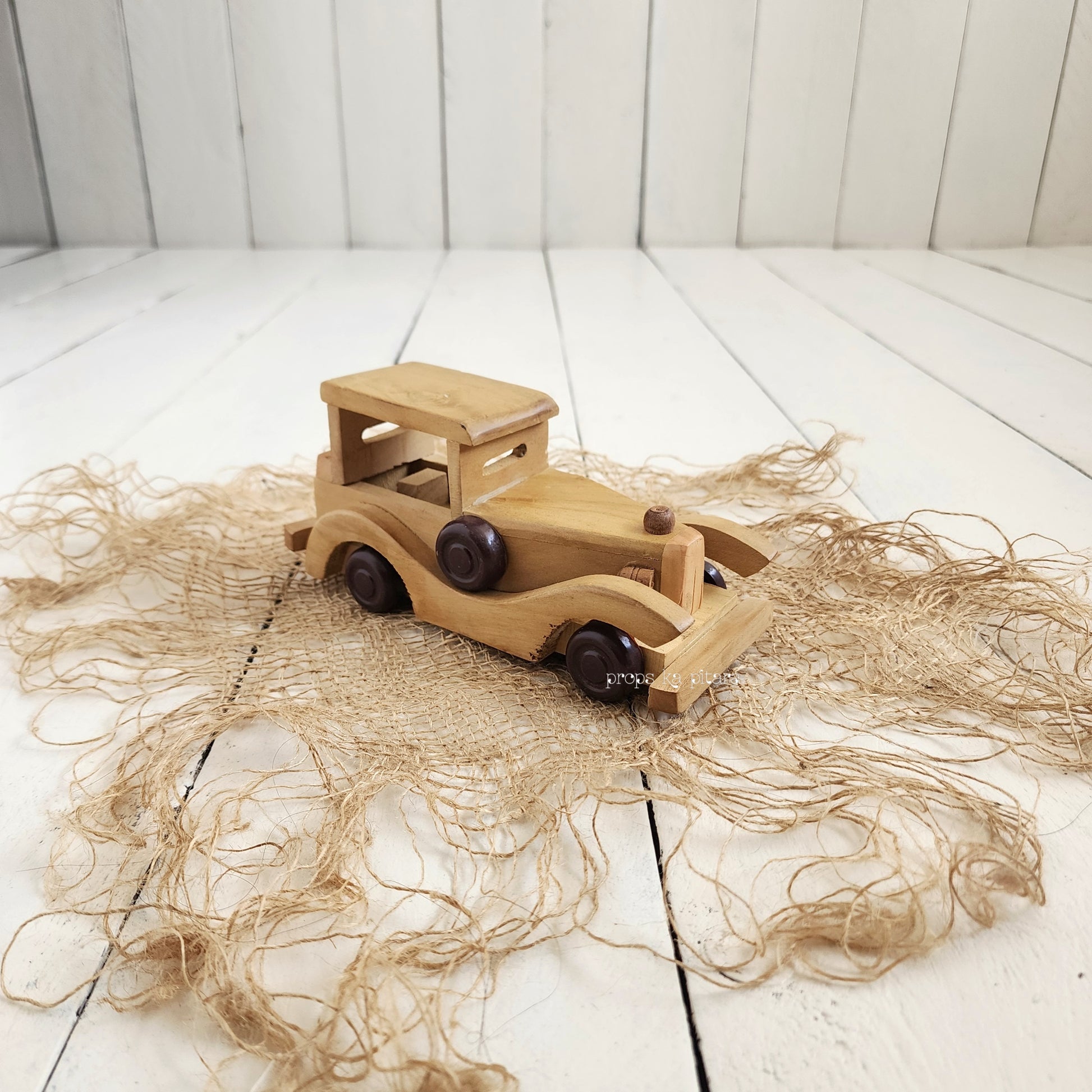 A beautifully handcrafted wooden Vintage Car that is ideal for a variety of setups.