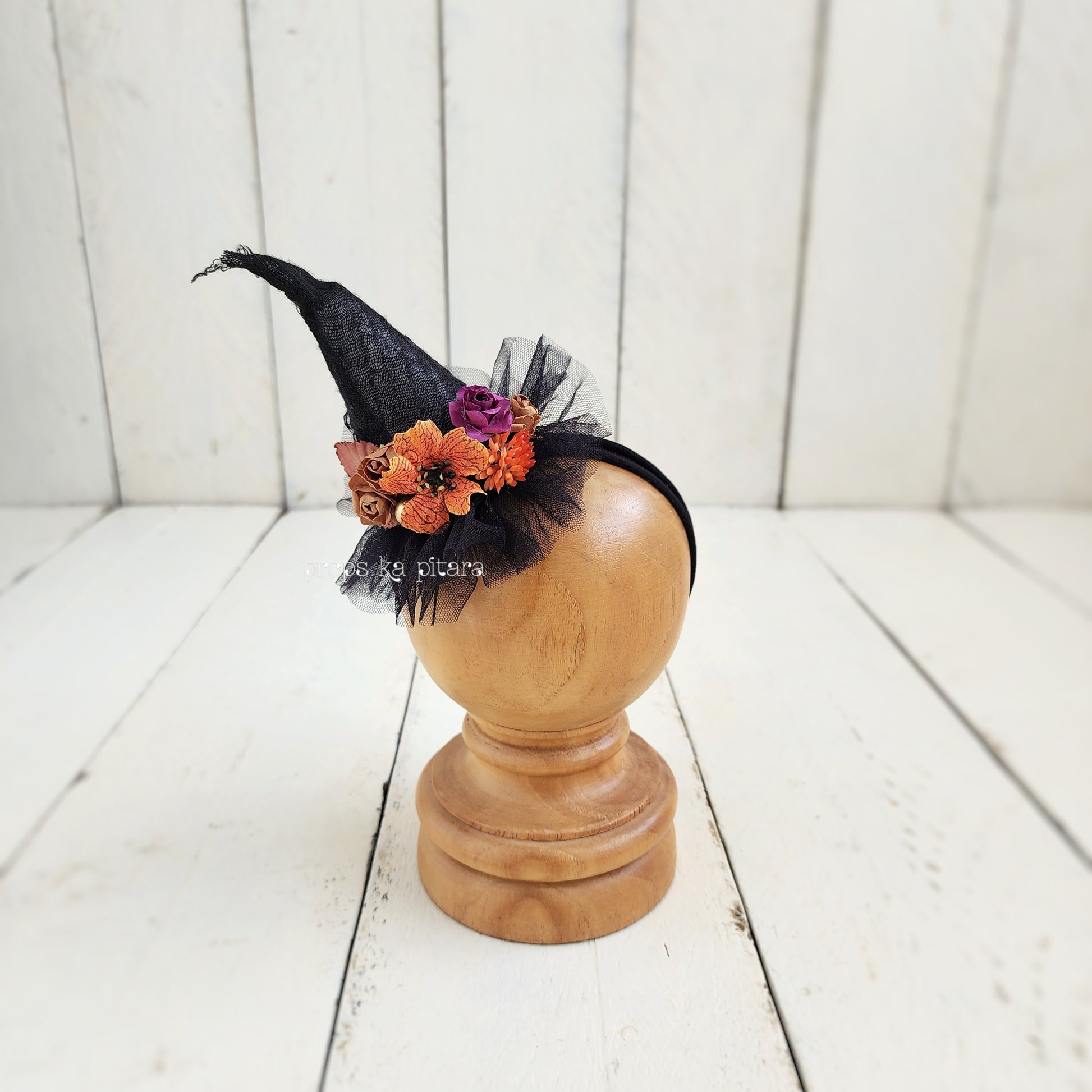 Adorable witch hat with delicate details. Perfect for the Halloween season.