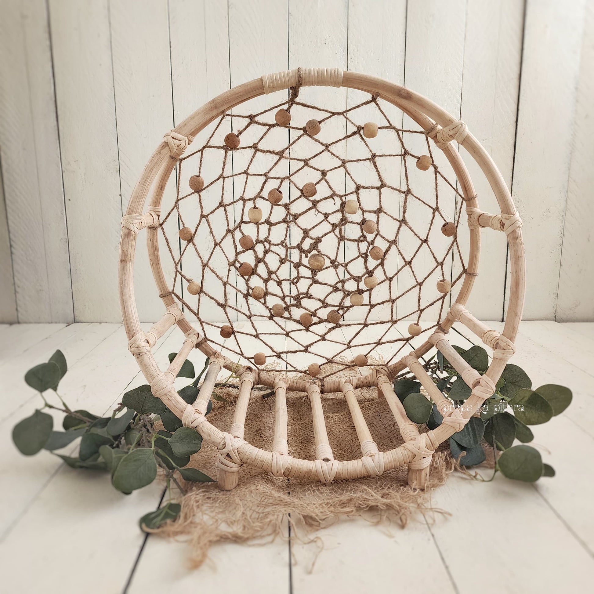 Beautifully handcrafted newborn dreamcatcher with rope weaving and wooden beads detailing.